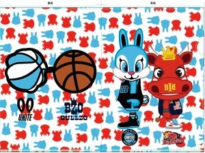 岩手ビッグブルズマスコットキャラクター”BULLZO”と今節の対戦相手 東京ユナイテッドBCのマスコットキャラクター”ユナイト”の夢の競演🐮♡🐰