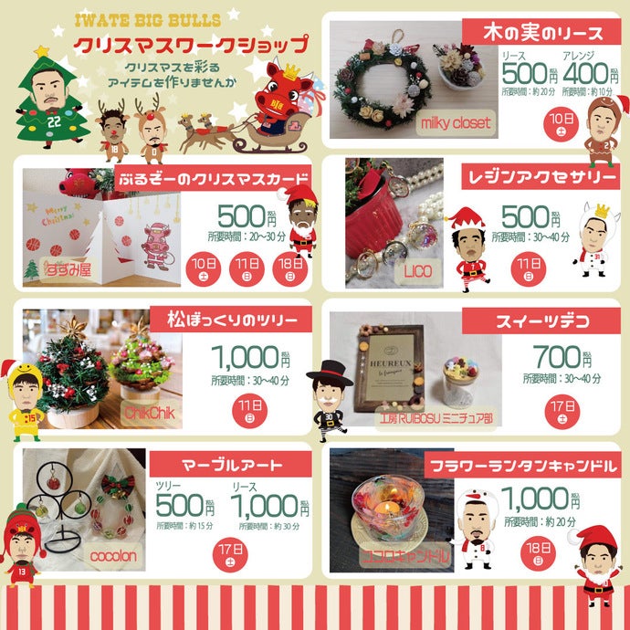 2022年12月17日(土)・18日(日)に盛岡タカヤアリーナで開催される「トヨタL&F岩手Presents B3.LEAGUE 2022-23season PENALTY DAY 岩手ビッグブルズvs.横浜エクセレンス」にて”クリスマスワークショップ”をOPENいたします🎄✨