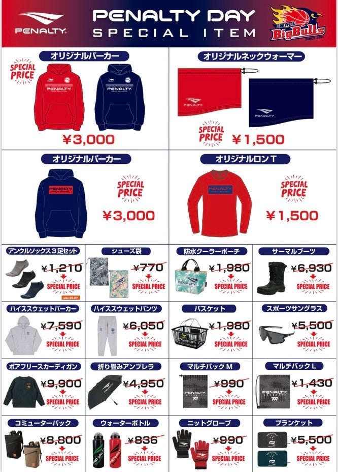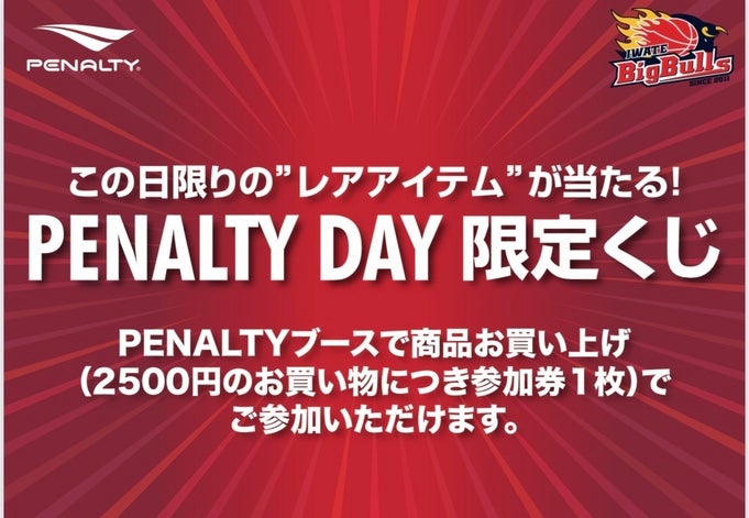 2022年12月17日(土)・18日(日)に 盛岡タカヤアリーナで開催される「トヨタL&F岩手Presents B3.LEAGUE 2022-23season 岩手ビッグブルズvs.横浜エクセレンス」で会場内にPENALTY特設ブースを設置し、各種PENALTY製品を特別価格で販売します!