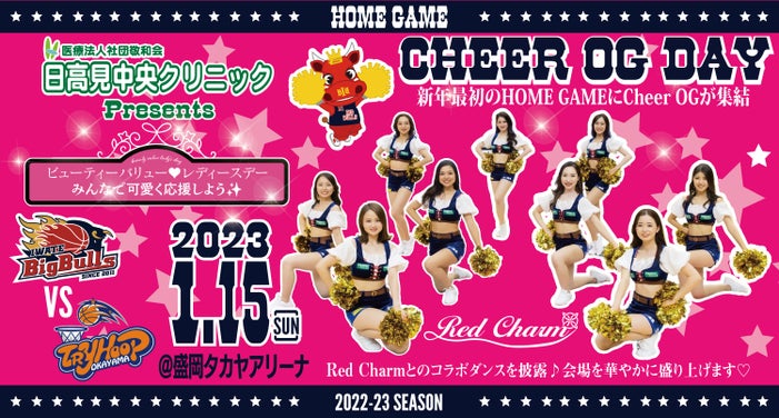 2023年1月15日(日)に盛岡タカヤアリーナで開催される「B3.LEAGUE 2022-23season ビューティーバリュー♡レディースデー みんなで可愛く応援しよう✨ 岩手ビッグブルズ vs トライフープ岡山」にて『日高見中央クリニックPresents CHEER OG DAY』を開催いたします!
