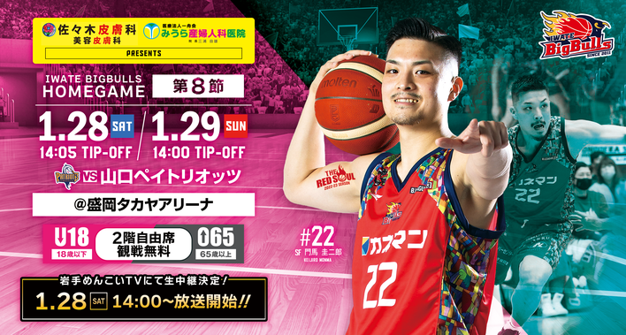 このたび岩手ビッグブルズでは、2023年1月28日(土)・29日(日)に開催される「B3.LEAGUE 2022-23season ホーム第8節 山口ペイトリオッツ戦」の冠パートナーが「佐々木皮膚科」様・「みうら産婦人科医院」様に決定しました。