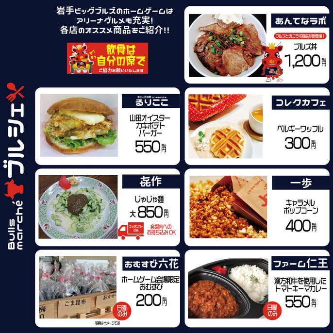 【ゲーム情報】岡山戦 飲食ブース「Bulls marché」ラインナップご紹介