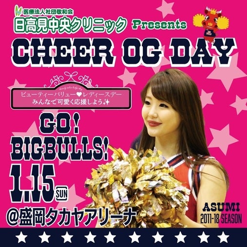 2023年1月15日(日)に盛岡タカヤアリーナで開催される「B3.LEAGUE 2022-23season ビューティーバリュー♡レディースデー みんなで可愛く応援しよう✨ 岩手ビッグブルズ vs トライフープ岡山」の試合を盛り上げる『日高見中央クリニックPresents CHEER OG DAY』に出演するメンバーをご紹介いたします☆