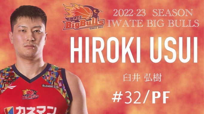 この度、岩手ビッグブルズでは、臼井弘樹選手とB3.LEAGUE 2022-23seasonの選手契約が合意に達しましたのでお知らせいたします。