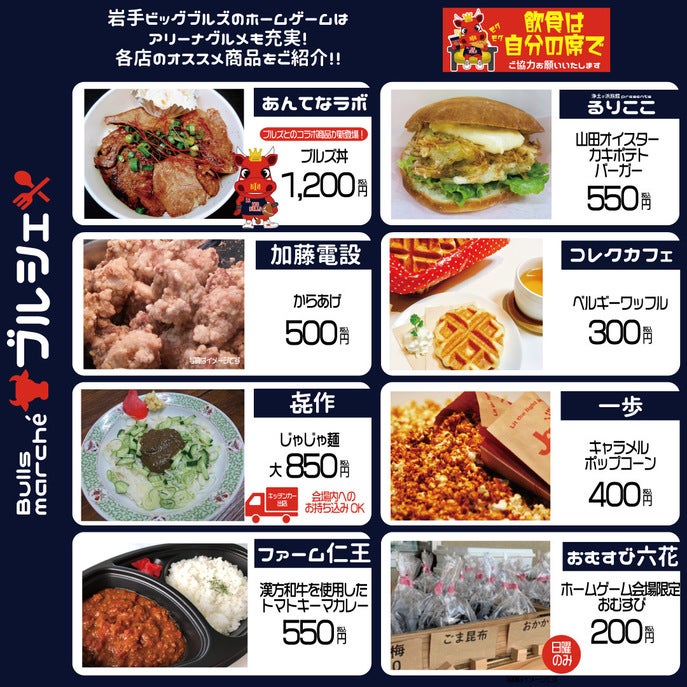 【ゲーム情報】山口戦 飲食ブース「Bulls marché」ラインナップご紹介