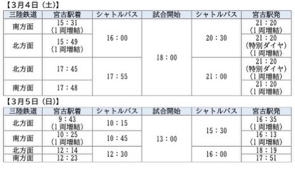 ③宮古駅から試合会場までのシャトルバスを運行