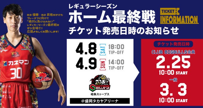 4月開催の岩手ビッグブルズレギュラーシーズンホーム最終戦観戦チケットの販売スケジュールが決定いたしましたのでお知らせいたします。