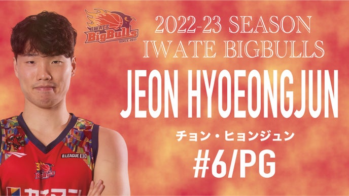 この度、岩手ビッグブルズでは、チョン・ヒョンジュン選手とB3.LEAGUE 2022-23seasonの選手契約が合意に達しましたのでお知らせいたします。3/4,5のベルテックス静岡戦より出場が可能となります。
