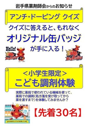 ぜひ岩手県薬剤師会様のブースに足をお運びいただき、アンチ・ドーピングや薬剤師のおしごとに触れてみてください!!