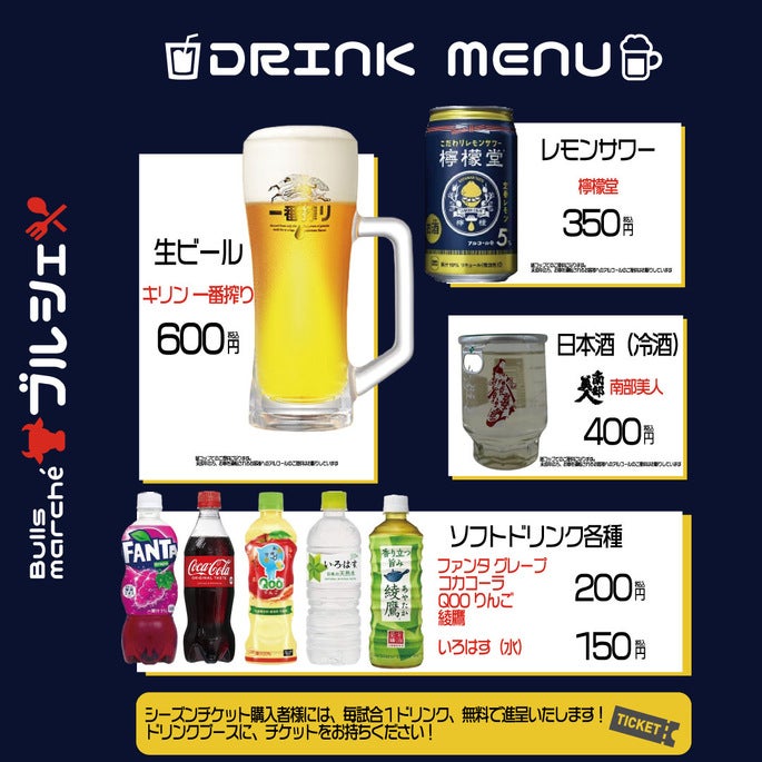 今季より飲食ブースを『Bulls marché(ブルズマルシェ)』と称し、略称『ブルシェ』としてご紹介していきます♪