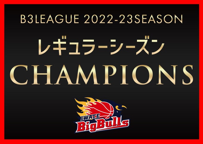 先週末(4/2)のAWAY品川戦の勝利、そして他会場の試合結果により、岩手ビッグブルズのB3.LEAGUE 2022-23 レギュラーシーズンCHAMPIONSが確定いたしました!