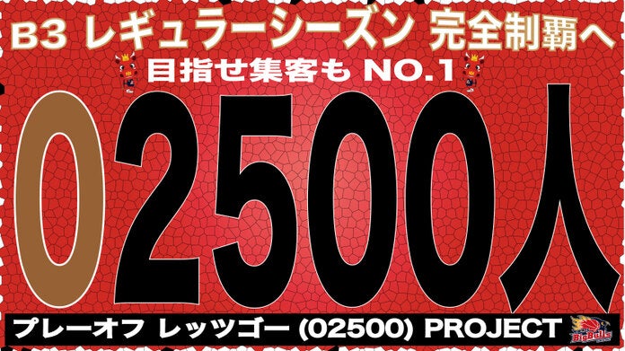 【ゲーム情報】B3レギュラーシーズン完全制覇へ!目指せ集客もNo.1!”レッツゴー(02500)PROJECT”