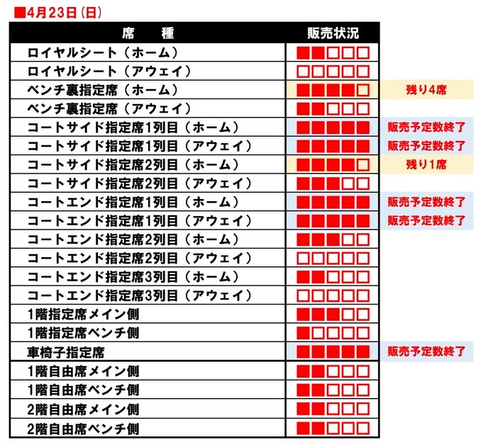 【チケット情報】PO準々決勝 チケット販売状況 ※4月17日時点