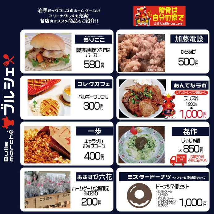 【ゲーム情報】PO準々決勝 飲食ブース「Bulls marché」ラインナップご紹介