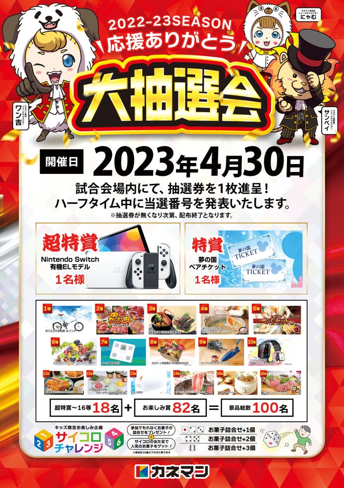 ハーフタイムにカネマンブースにて当選番号を発表いたしますので、ぜひブースにお立ち寄りください♪