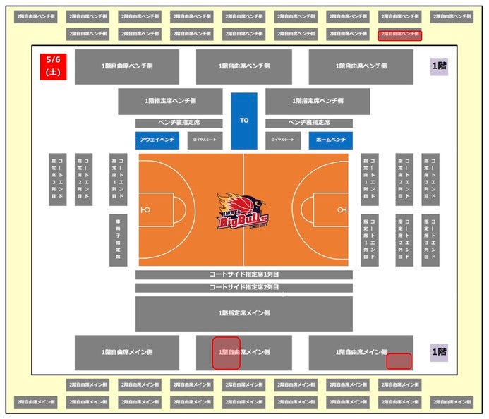 2023年5月6日(土)・7日(日)・8日(月)に盛岡タカヤアリーナで開催される「杜陵高速印刷/岩手日報社Presents B3 PLAYOFFS FINALS 2022-23 岩手ビッグブルズvs.ベルテックス静岡」の観戦席についてお知らせいたします。