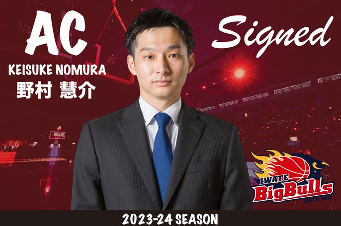 この度、岩手ビッグブルズでは、野村慧介氏と2023-24seasonのアシスタントコーチ契約を締結しましたのでお知らせいたします。