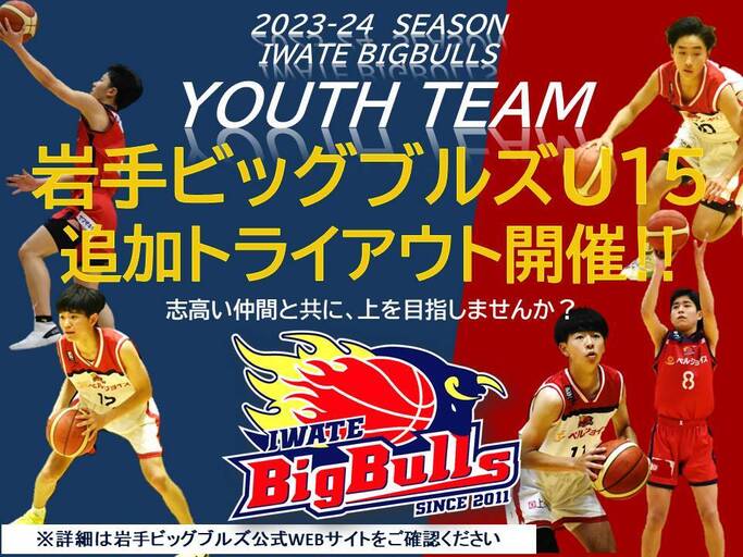 【ACADEMY】[第7期]岩手ビッグブルズU15 追加トライアウト開催のお知らせ