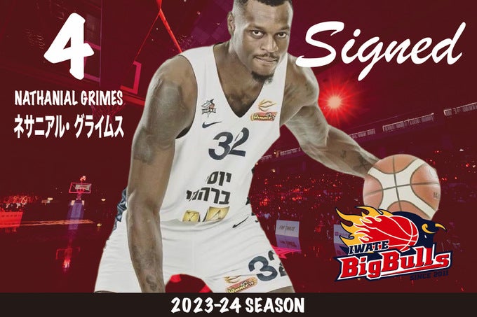 この度、岩手ビッグブルズでは、Nathanial Grimes(ネサニアル・グライムス)選手と2023-24seasonの選手契約が合意に達しましたのでお知らせいたします。