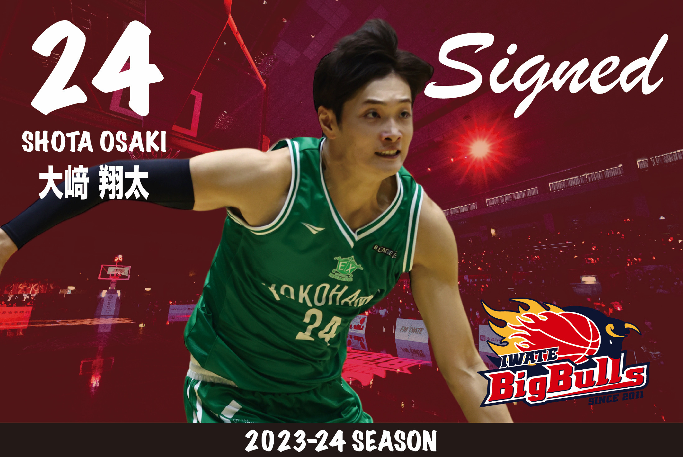 この度、岩手ビッグブルズでは、大﨑翔太選手と2023-24seasonの選手契約が合意に達しましたのでお知らせいたします。