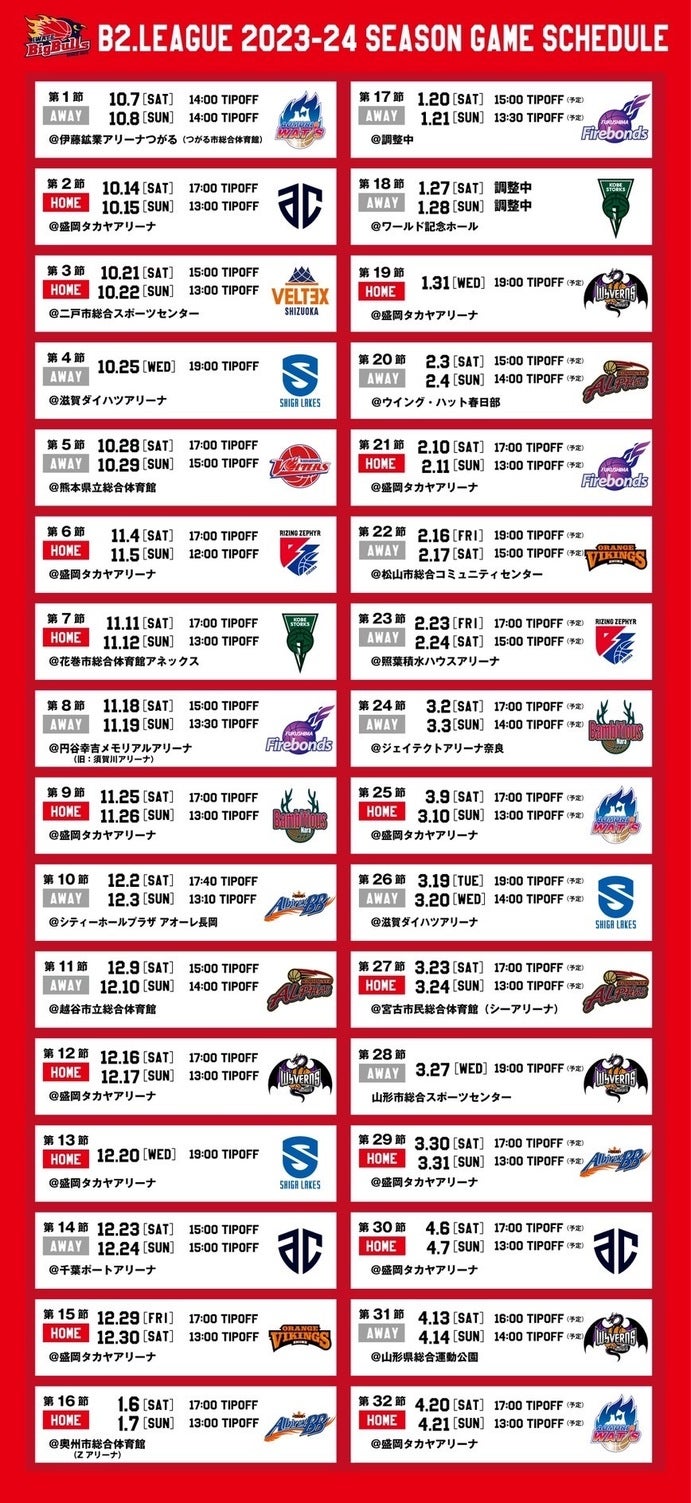 [B2.LEAGUE 2023-24season 岩手ビッグブルズ GAME SCHEDULE]