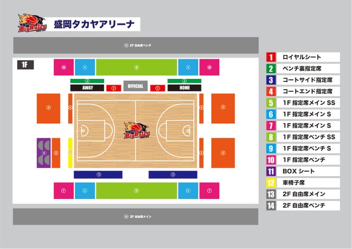 ※上記は盛岡タカヤリーナの会場レイアウトとなりますがコート周りの配置は同一となります。