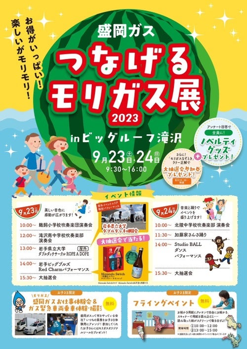 9/23(土),24(日)にビッグルーフ滝沢で開催される「つなげるモリガス展2023」に岩手ビッグブルズブースを出店します!また、9/23(土)14時からRed Charmによるダンスパフォーマンス&チア教室を行います!