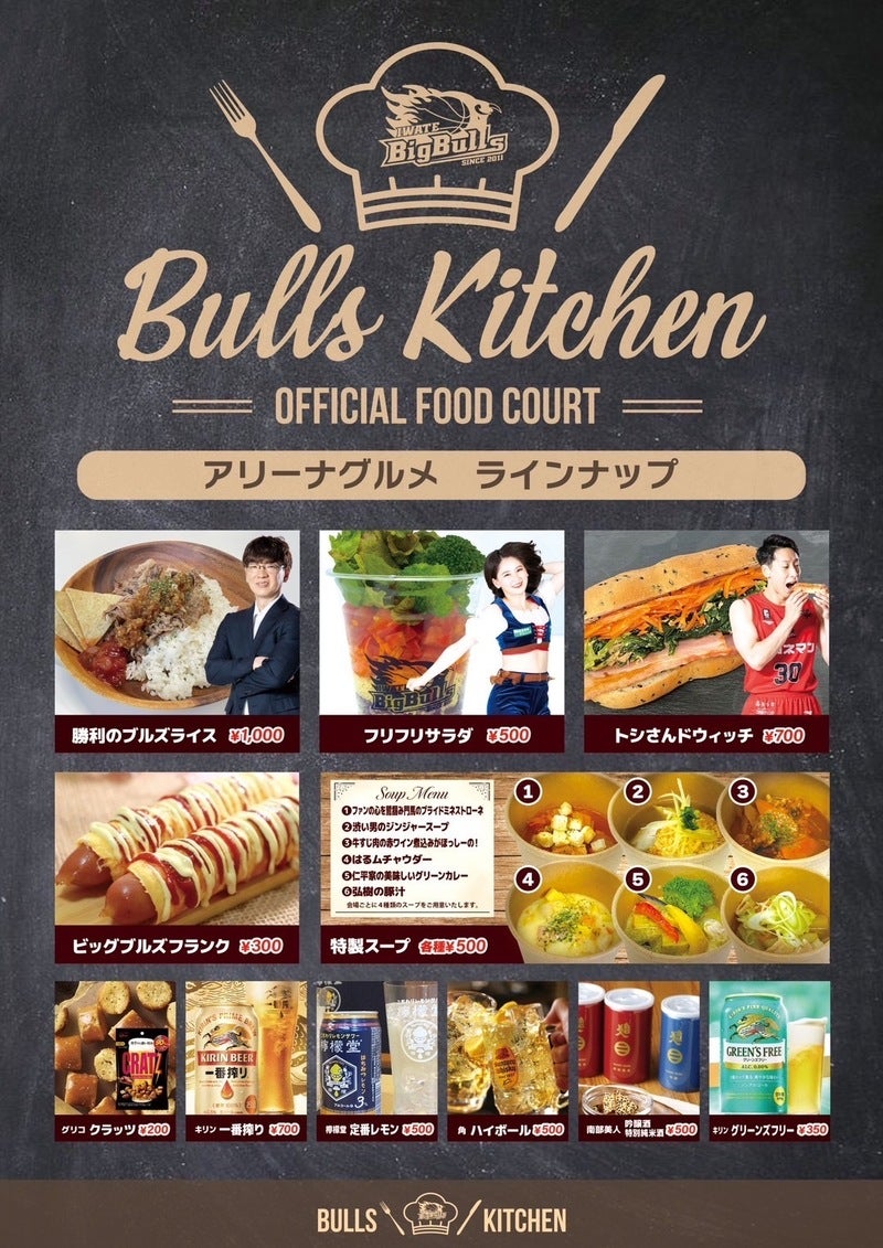 『Bulls Kitchen(ブルズキッチン)』と称し、選手やチームスタッフ、Red Charmにちなんだメニューをご提供します♪