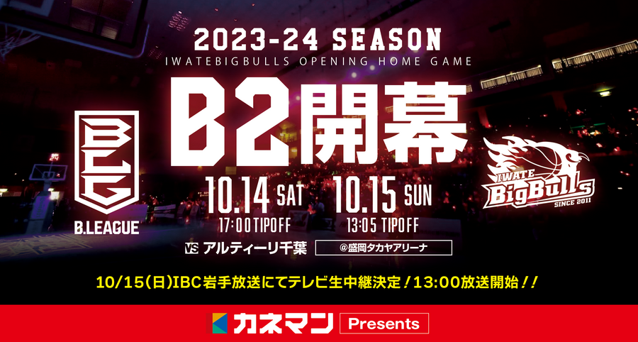 2023年10月14日(土)・15日(日)に盛岡タカヤアリーナで開催される「2023-24SEASON B2リーグ戦 カネマンPresents ホーム開幕節 岩手ビッグブルズvs.アルティーリ千葉」の飲食ブースラインナップをご紹介いたします。