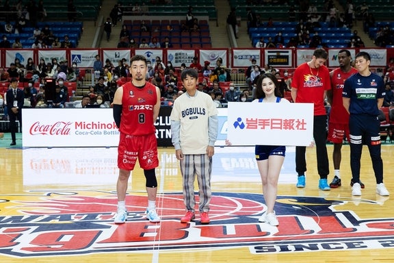 『岩手日報ブルズHERO賞』とは、岩手ビッグブルズの選手を身近に感じ、そして大舞台でのインタビューなどを通じて、将来の経験値を高め、そして子供達の夢を広げるために、岩手日報社様とタッグを組ませていただきました。試合直後の熱く盛り上がったコート上で、選手の想いを会場に届けるとても素敵な企画となっております。