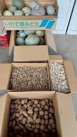 かぼちゃ、ニンニク、落花生、じゃがいも、ビーツ等々、魅力的なお野菜が山のよう!