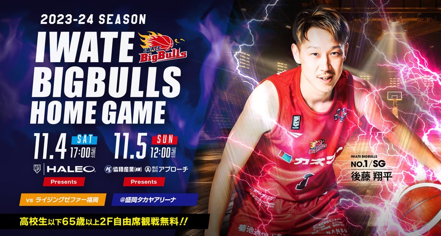2023年11月4日(土)・5日(日)に盛岡タカヤアリーナで開催される「2023-24SEASON B2リーグ戦 HALEO/協積産業/アプローチPresents 岩手ビッグブルズvs.ライジングゼファー福岡」のゲームスケジュールをお知らせいたします。