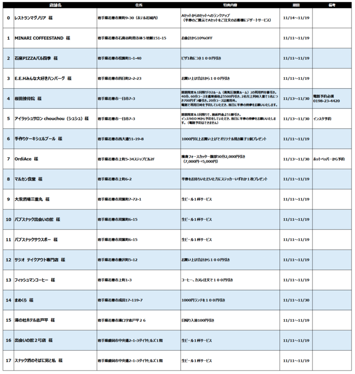 岩手ビッグブルズの11/11,12神戸戦の観戦チケットまたは半券の提示で、花巻市内の各商業施設で”優待(サービス)”を受けることができます!