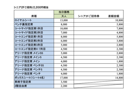 ※詳しくは、試合会場内、チケットブースにてお問い合わせください。
