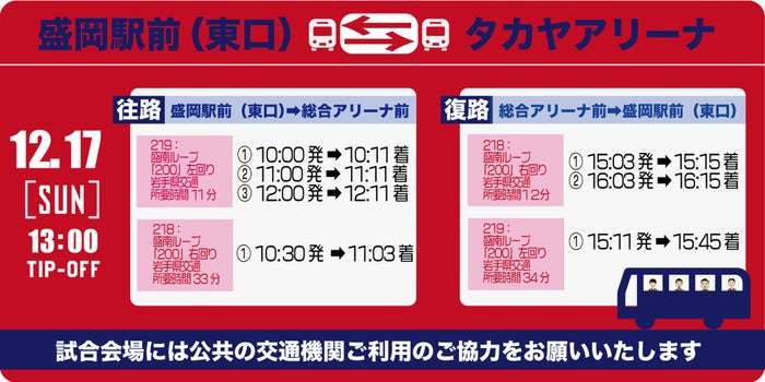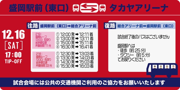 2023年12月16日(土)・17(日)に盛岡タカヤアリーナで開催される「2023-24SEASON B2リーグ戦 黄金の國、いわて。/岩手県人権啓発活動ネットワーク協議会Presents 岩手ビッグブルズvs.山形ワイヴァンズ」の駐車場・公共交通機関についてご案内いたします。