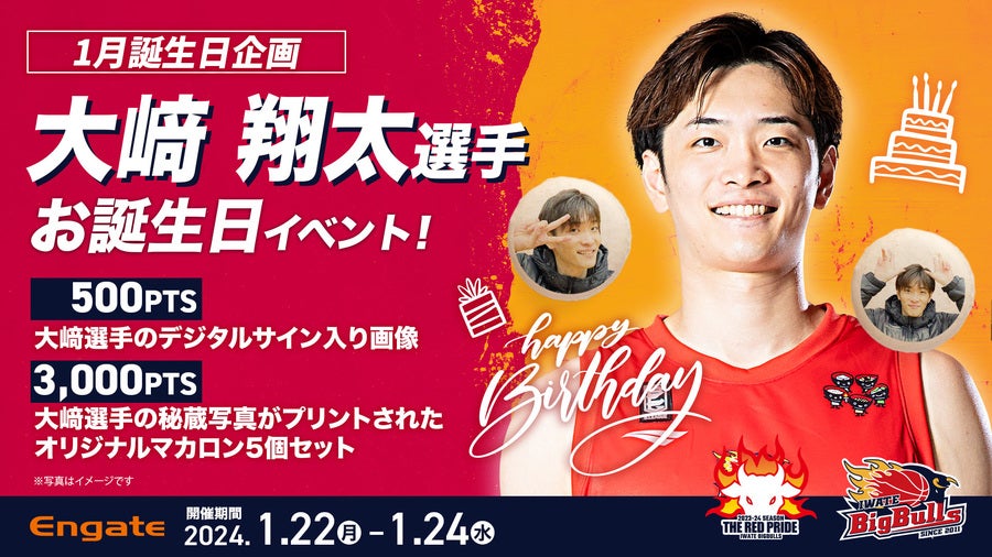 エンゲート第9弾!1月23日にお誕生日を迎える大﨑翔太選手のお誕生日イベントを開催いたします。