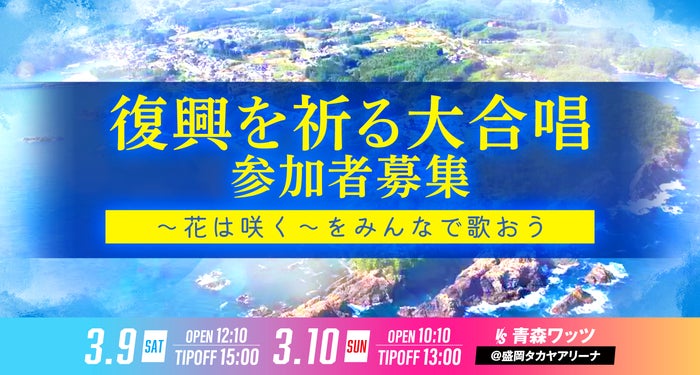 東日本大震災復興祈念試合のオープニングセレモニー内で、岩手県内または岩手県出身の方々による、『花は咲く』の合唱を実施いたします。