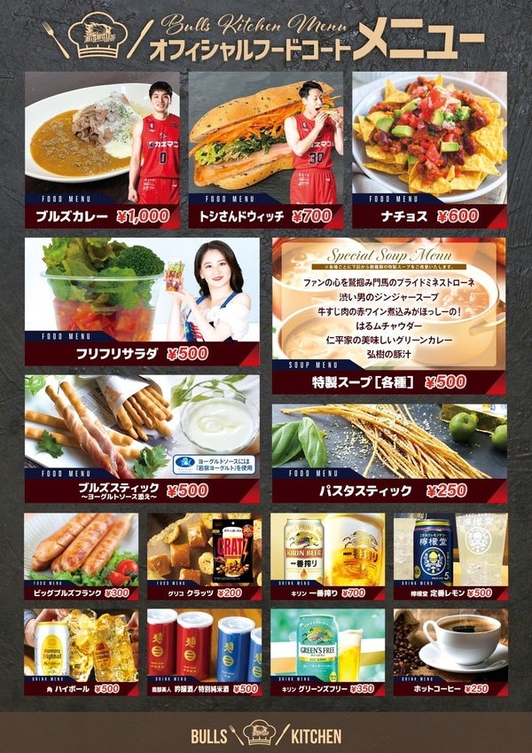 アリーナ内の『Bulls Kitchen(ブルズキッチン)』のほかにも様々な飲食ブースを出店しております!