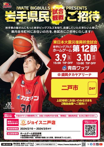 このたび岩手ビッグブルズでは、2024年3月9日(土)・10日(日)に開催される「2023-24SEASON B2リーグ戦 ホーム第12節」の冠パートナーが 「イワテ美容商事」様・「岩手日報社」様に決定しました。