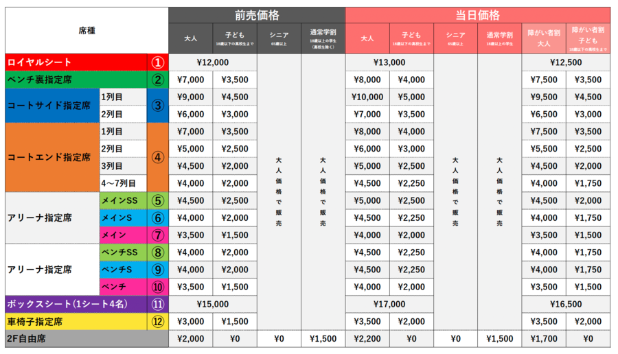 ※コートエンド指定席1列目の前には「メディア撮影エリア」が設置されますので、予めご了承ください。