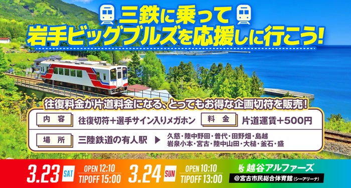 三陸鉄道 様と宮古市 様にご協力頂き、三陸鉄道を利用し多くの方に岩手ビッグブルズの宮古開催のホームゲームに観戦いただけるような企画切符を両日ご用意いただきました!