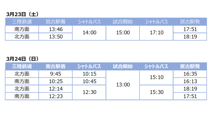 宮古駅から試合会場(宮古市⺠総合体育館)までのシャトルバスを運行
