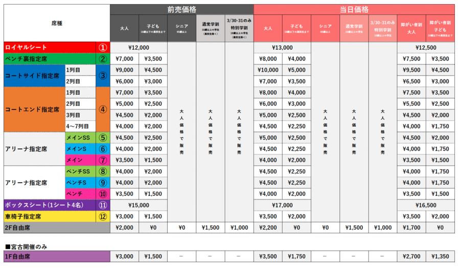 ・他の席種へのランクアップはできません。