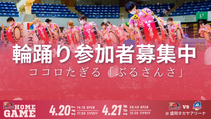 - 両日、試合前のオープニングセレモニーの中で「ぶるさんさ」参加者による「盛岡さんさ踊り』を実施いたします。