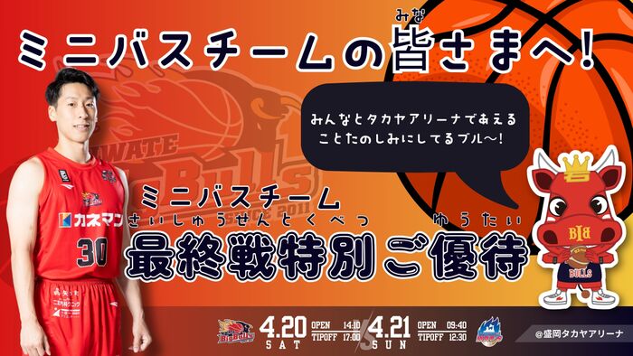 2023-24season最終戦 ミニバスチーム特別ご優待企画をご用意いたしました!