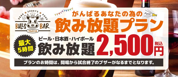 開場時間から試合終了のブザーが鳴るまで最大5時間飲み放題可能な、飲み放題プラン!