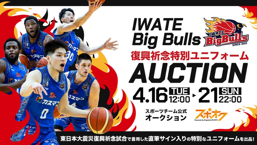 岩手ビッグブルズでは「東日本大震災復興祈念試合」で着用した株式会社ヘラルボニー様とのコラボレーション企画【復興祈念特別ユニフォーム】に各選手の直筆サインを入れて出品する『IWATE BIGBULLS 復興祈念特別ユニフォーム オークション』の実施が決定しましたので、お知らせいたします。