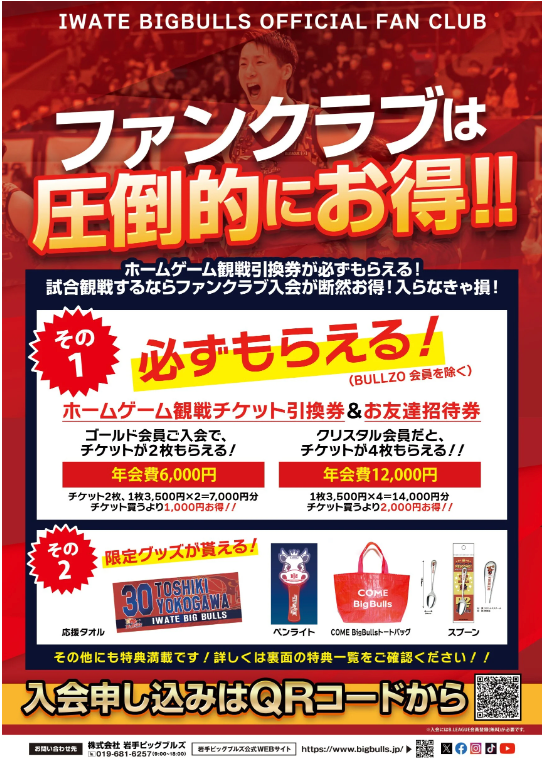 『ファン感謝祭』は、2023-24Season 岩手ビッグブルズ公式ファンクラブ「CLUB BIGBULLS」にご入会いただいている会員様限定のイベントとなります。(入場無料・事前申込不要)
