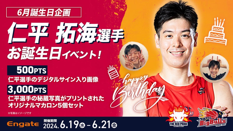 エンゲート第13弾!6月20日にお誕生日を迎える仁平拓海選手のお誕生日イベントを開催いたします。