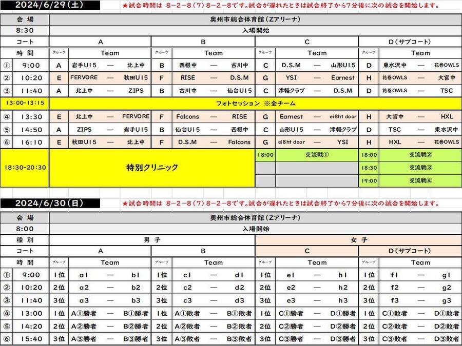 尚、先日発表させていただいた「穂坂健祐氏による特別クリニック」は1日目の第6試合終了後に、同会場で開催いたします。